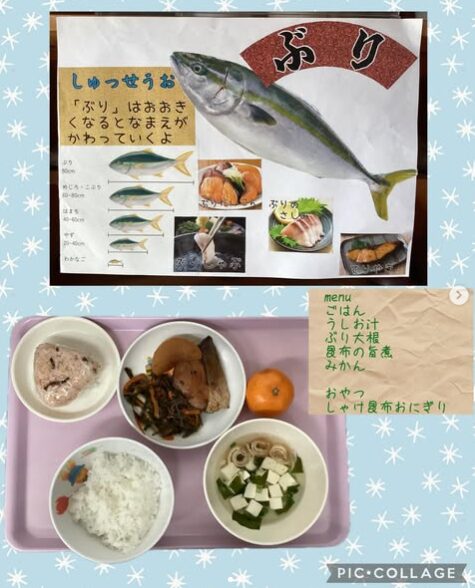 今年度最後魚の解体ショー✨新年ということで、長崎県ではお正月によく食べられる出世魚の「ぶり」をこどもたちの前で捌きました🐟(本当は、ちょっと小さい「やず」でした) 10月の水産教室で一度は見たことがあったこどもたちその時のことを思い出しながらよく見てくれました👀 捌いた「ぶり」はぶり大根にして食べました😋こどもたちから「お魚おいしい〜」をたくさんいただきました✨