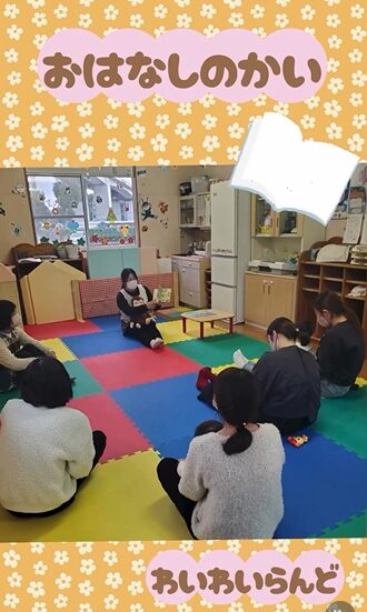 今日の活動はお話の会でした📕小さなお友だちが集まってくれたので、絵本と一緒に触れ合い遊びができる内容で行いました☺️心地良くなって眠るお友だち、絵本に興味津々のお友だち音に合わせて踊ってくれるお友だち✨とっても楽しい時間になりました♪
