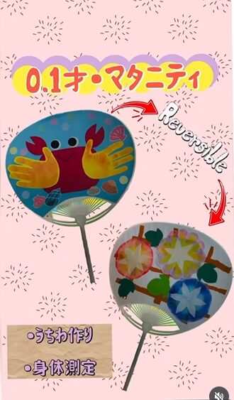 今日は0.1才・マタニティの日でした!かわいい手型のカニさんと涼しげな朝顔のうちわが完成しました✨✨やっと雨が上がり少しずつ晴れてきましたね☀️暑い日が続くようなので,ぜひ手作りうちわをご活用ください😆